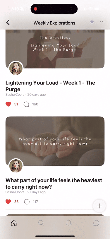 An ever-growing archive of video clips where Sasha shares insights on a wide range of topics. Each video is thoughtfully categorized, making it easy to explore the themes that speak most to your journey.